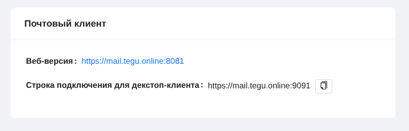 Также вы можете зарегистрироваться в админке с аккаунтом пользователя и найти в диалоге Дашборде плашку параметров, посвященную почтовому клиенту